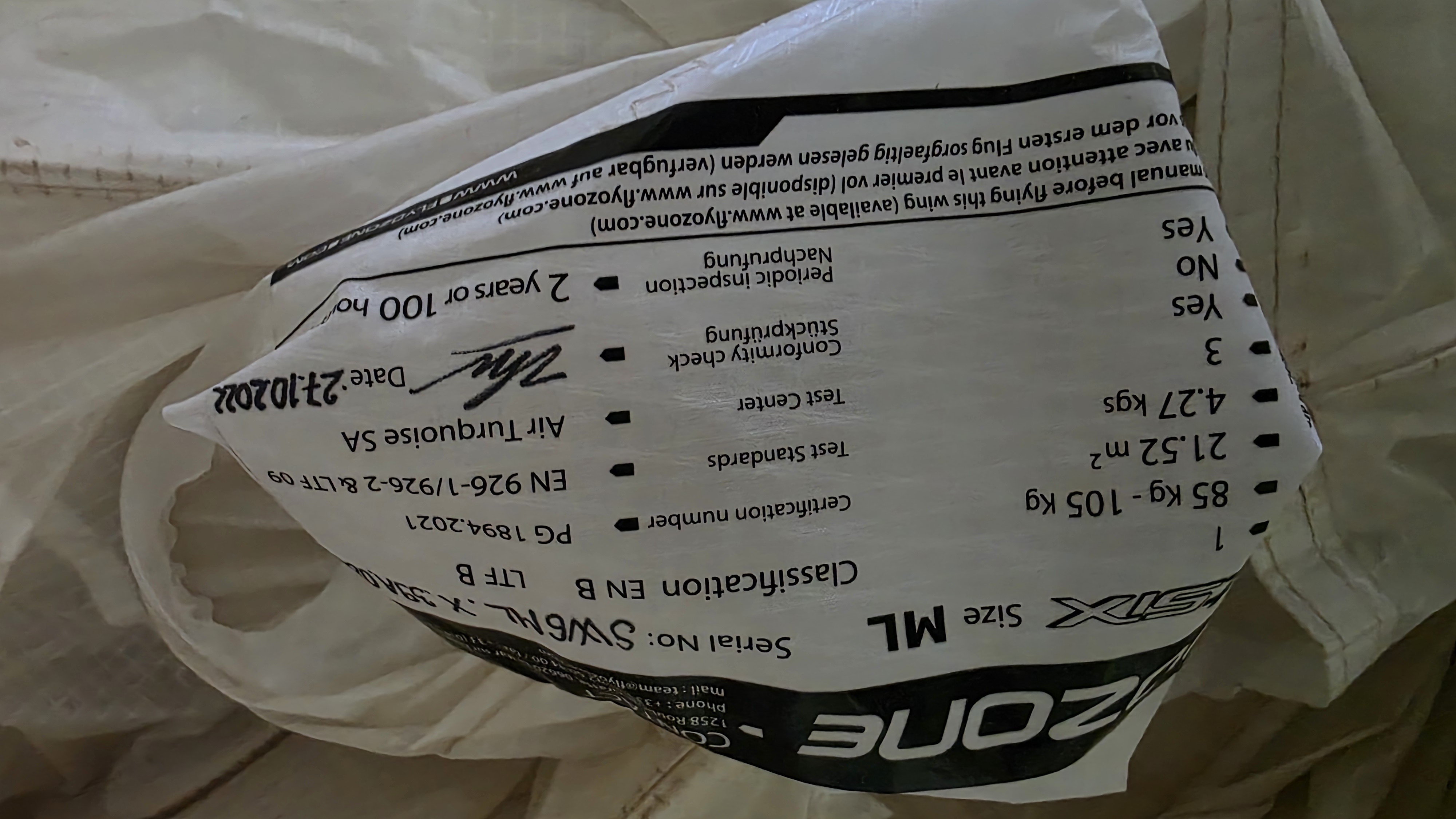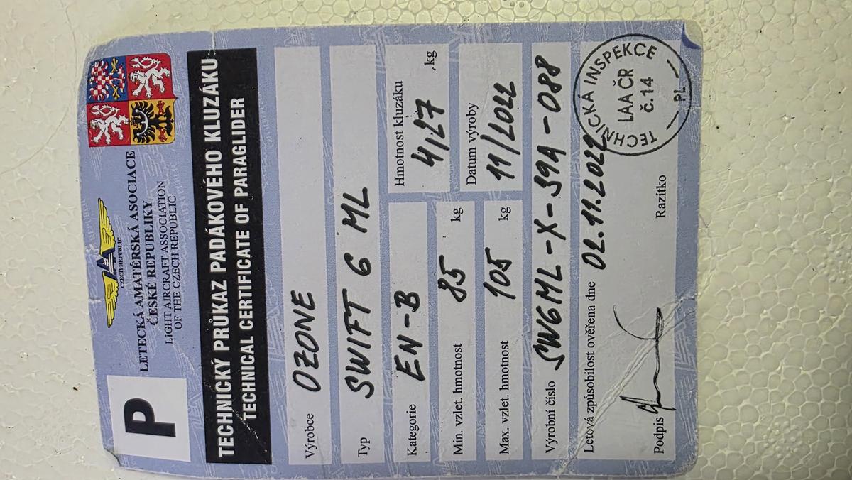 SELL: Wing EN B Ozone Swift Six 85-105kg Lightened TC valid