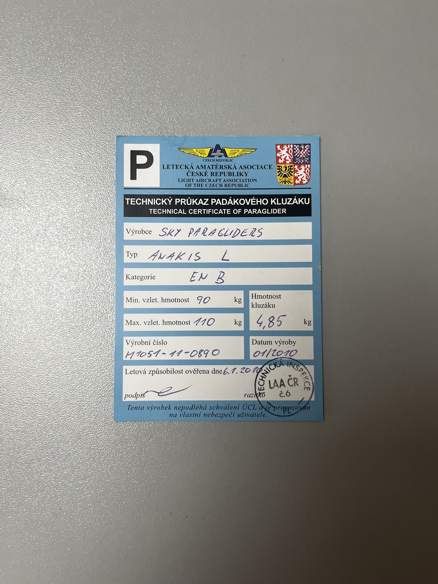| Certification | EN B / LTF B | EN A / LTF A | EN A / LTF A | EN A / LTF A | EN A / LTF A |