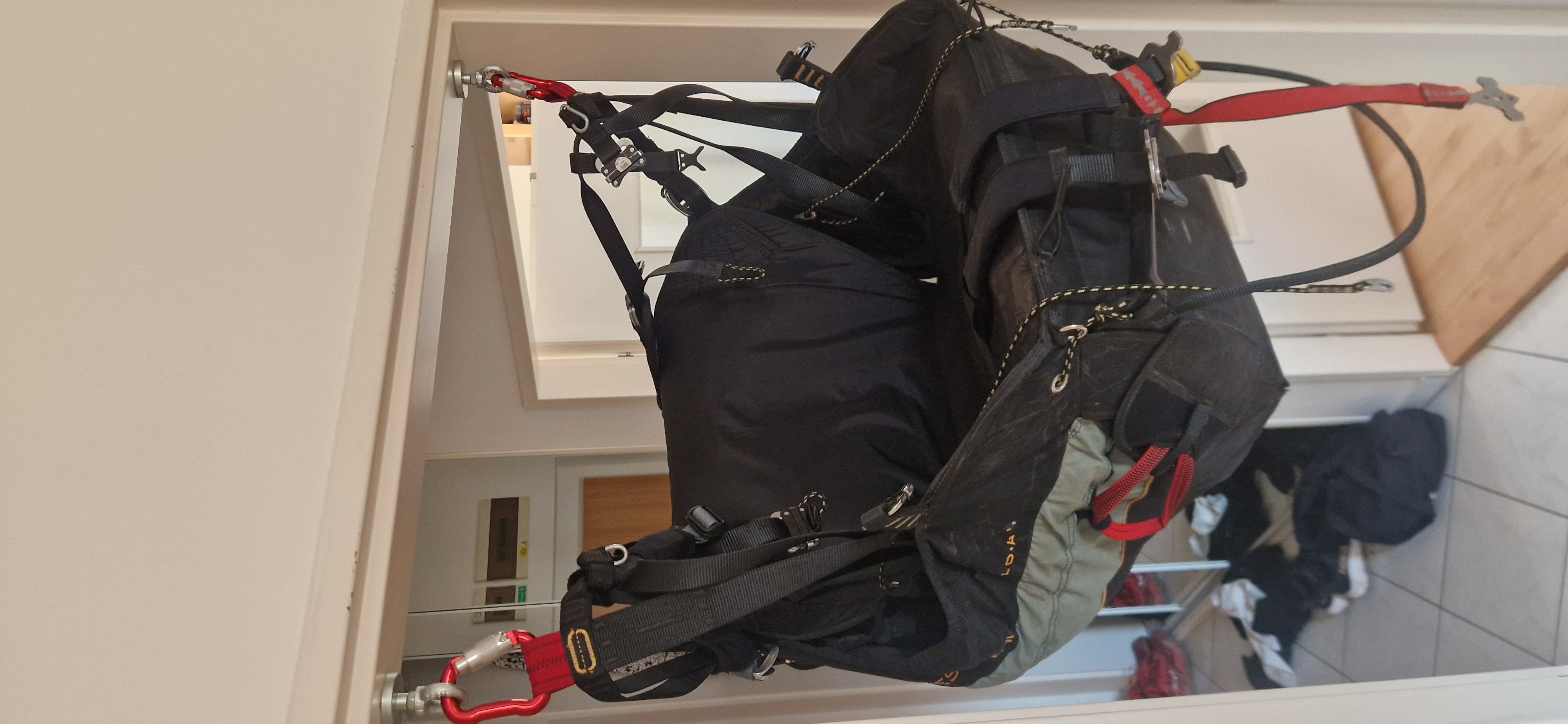 SELL: Harness For Beginners SKY Axel 2 L Used Carbines Foam protector With bag Reserve from below (Part of a Set)