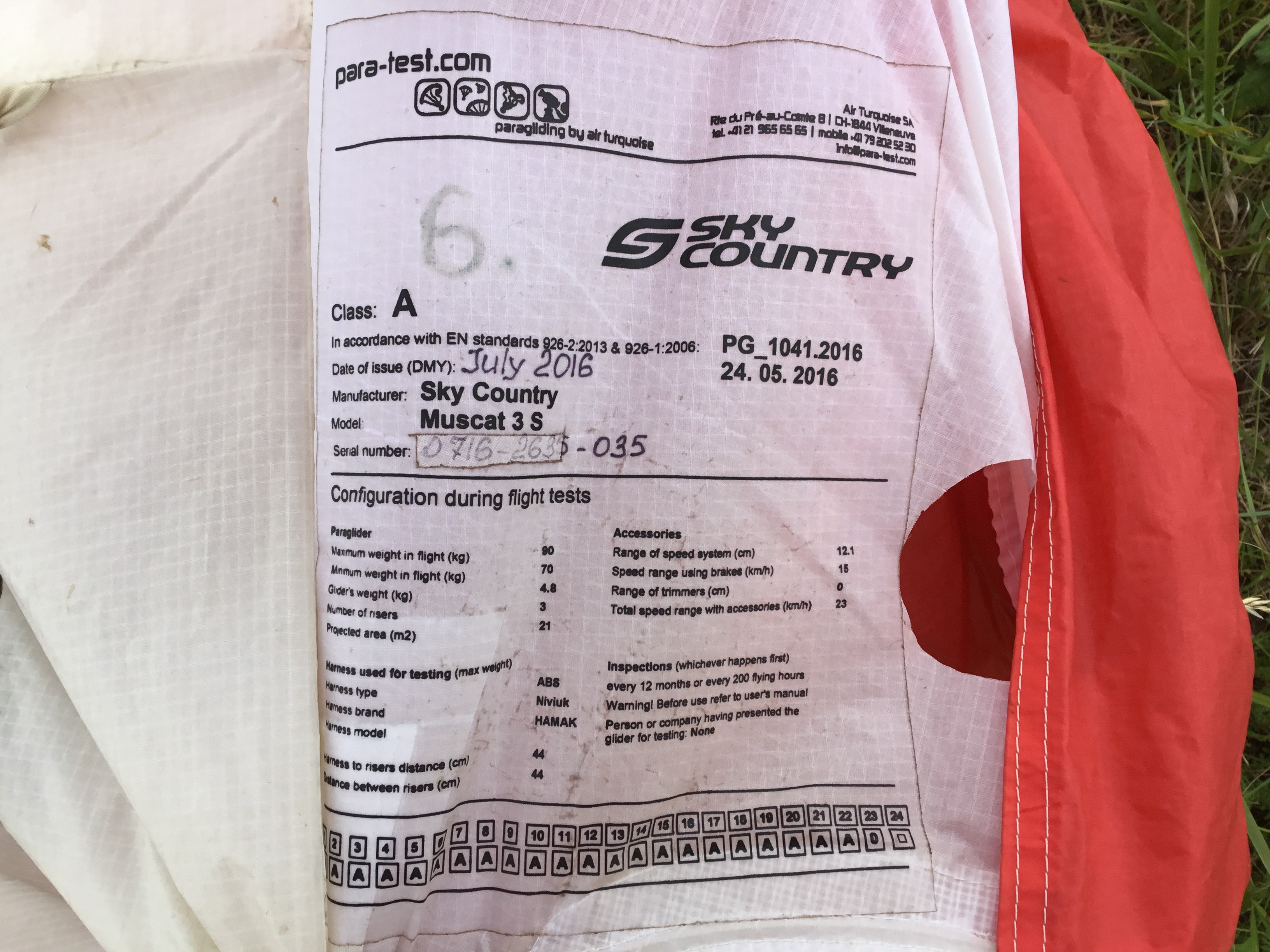 SELL: Wing EN A Sky Country Muscat 3 S s 70-90kg TC fresh TC valid