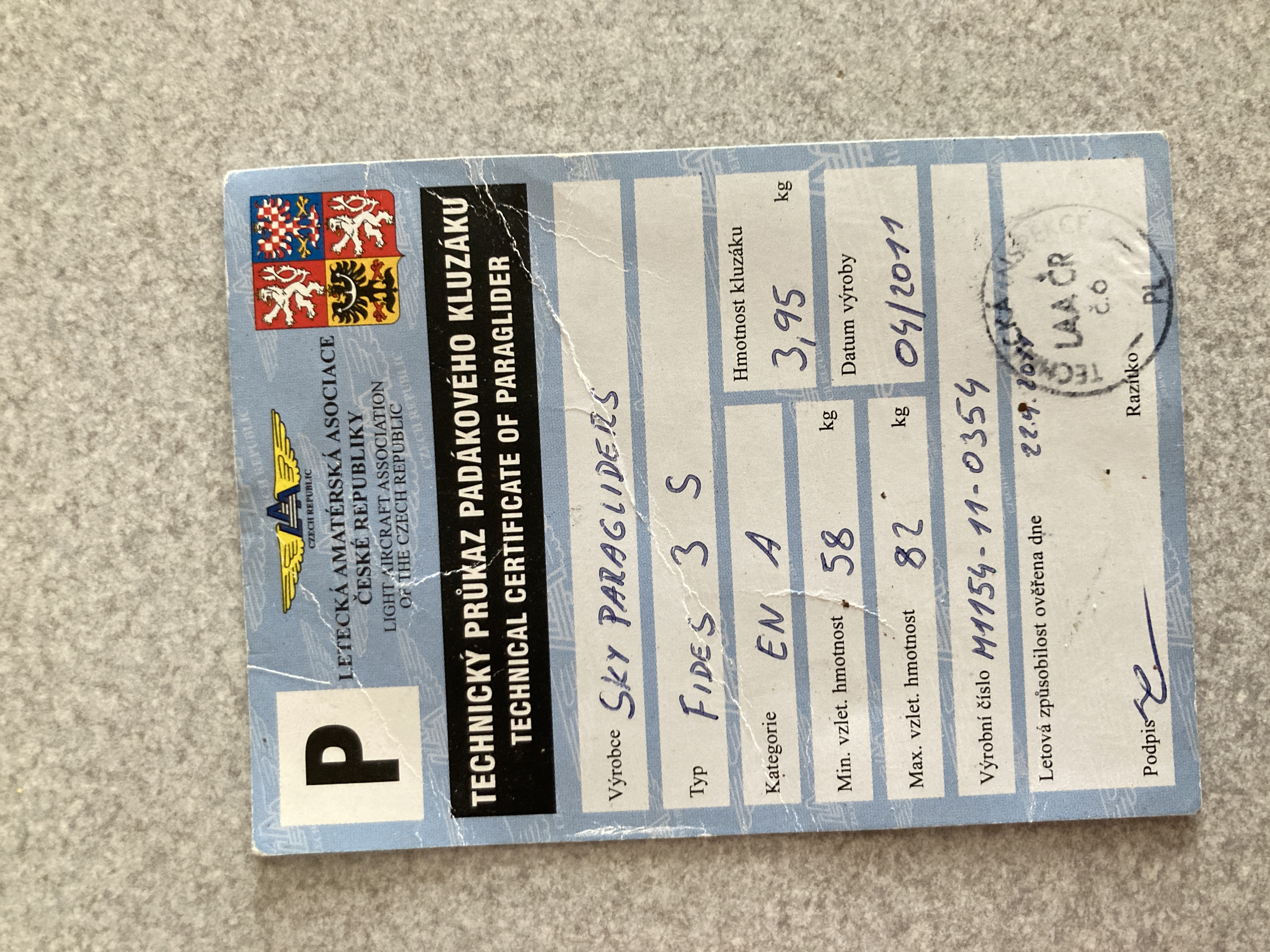 SELL: Wing EN A SKY Fides 3 S 58-82kg No SIVs No flying on the sand No trees No water TC valid