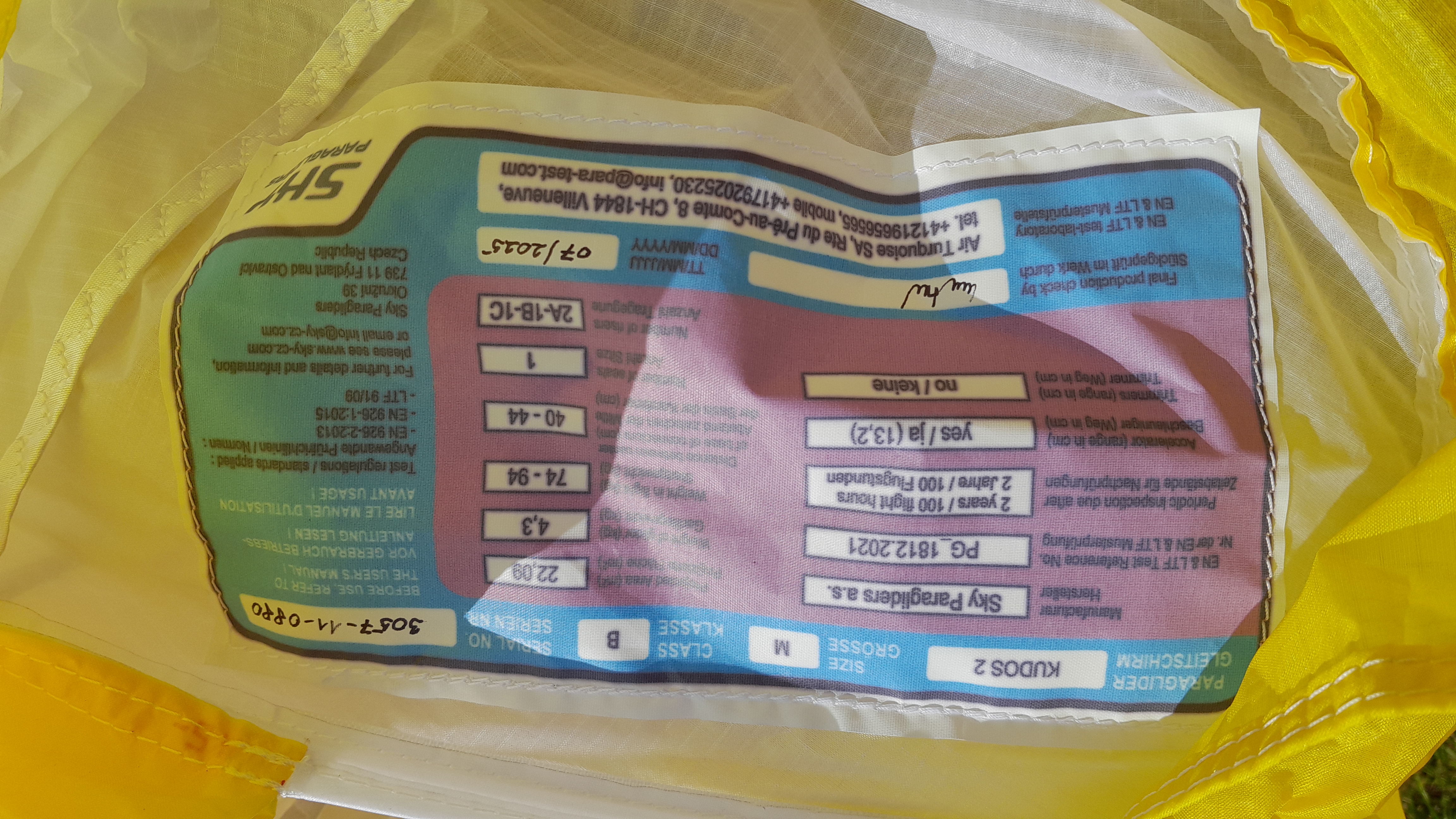 SELL: Wing EN B SKY Kudos 2 M 74-94kg Concertinas No water No trees No flying on the sand TC valid TC fresh