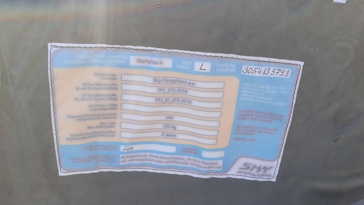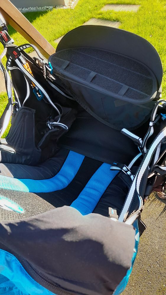 I am selling a demonstration seat, flown 3 times. SKYLIGHTER 4 is an evolution of the SKYLIGHTER series with several improvements: the new harness system is made of 12 mm ultralight straps, and for greater stability of the seat we have adjusted its geometry. SKYLIGHTER 4 is a hammock-type seat with foam spine protection, and at the request of pilots it now has extra storage space. Main characteristics of the seat: new strap system with 12mm ultralight straps ensures safety and comfort modified geometry guarantees greater stability small storage space under the pilot's feet, large rear storage space with separate pockets, two side pockets and additional space for small items in the integrated cockpit foam spine protector removable speedbag (possibility of combining the harness with three speedbag lengths) container for the rescue parachute is located under the pilot's thighs - in the center of gravity at the bottom of the harness the harness is easily adjustable in flight the rescue system handle can be easily felt new rear fairing filled with surge air integrated cockpit with removable instrument panel and sun visor speedbag plate is made of carbon fiber Edelrid Foras carabiners are standard Ronstan ball bearing pulleys low weight (only 3.2 kg in size L - weight of the complete harness ready to fly) the seat is fully certified according to EN / LTF - the first seat certified according to the new revised standard EN 1651:2018