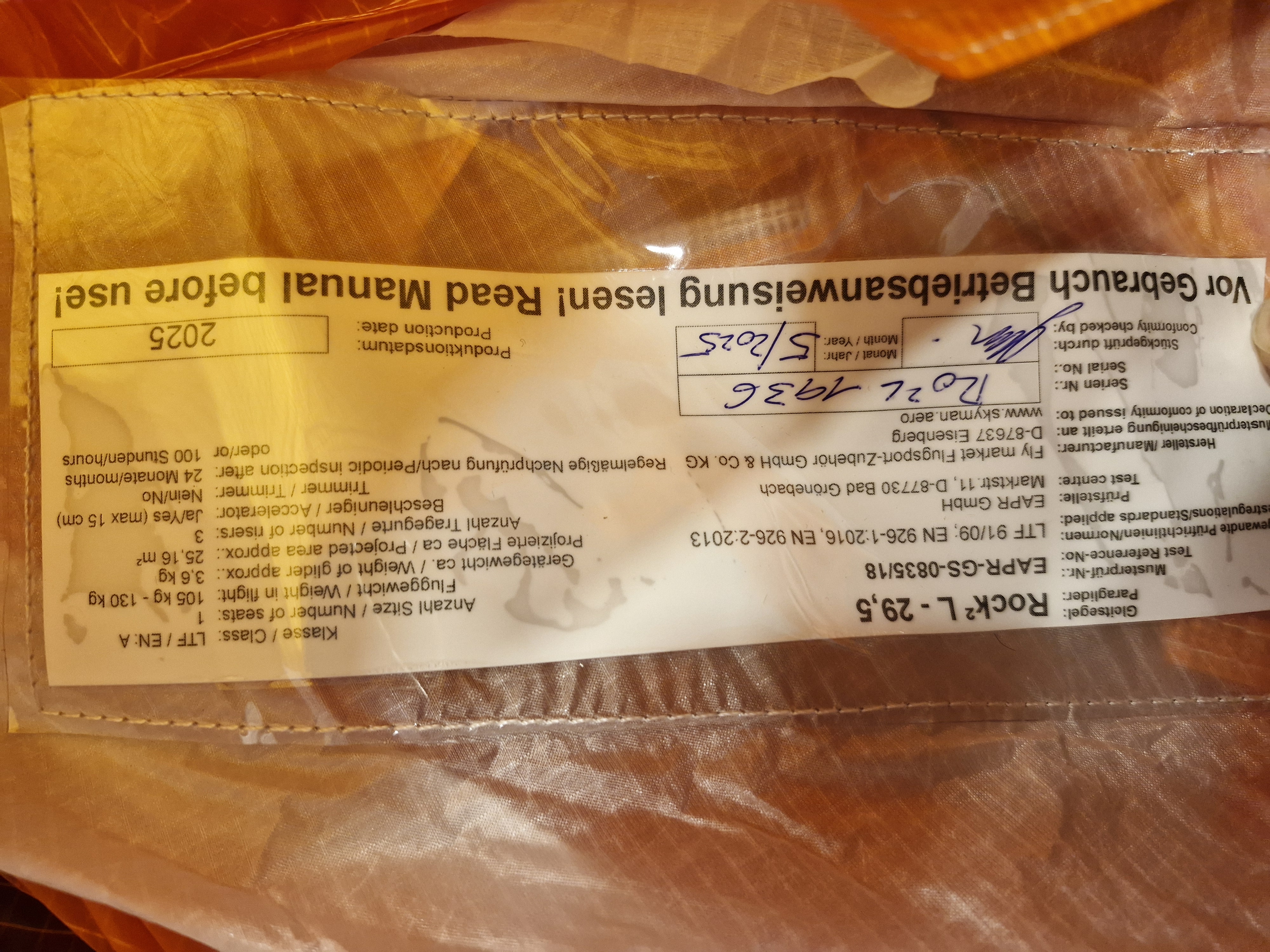 SELL: Wing EN A Skyman The Rock 2 29,5 115-130kg Concertinas No water No trees No flying on the sand TC valid