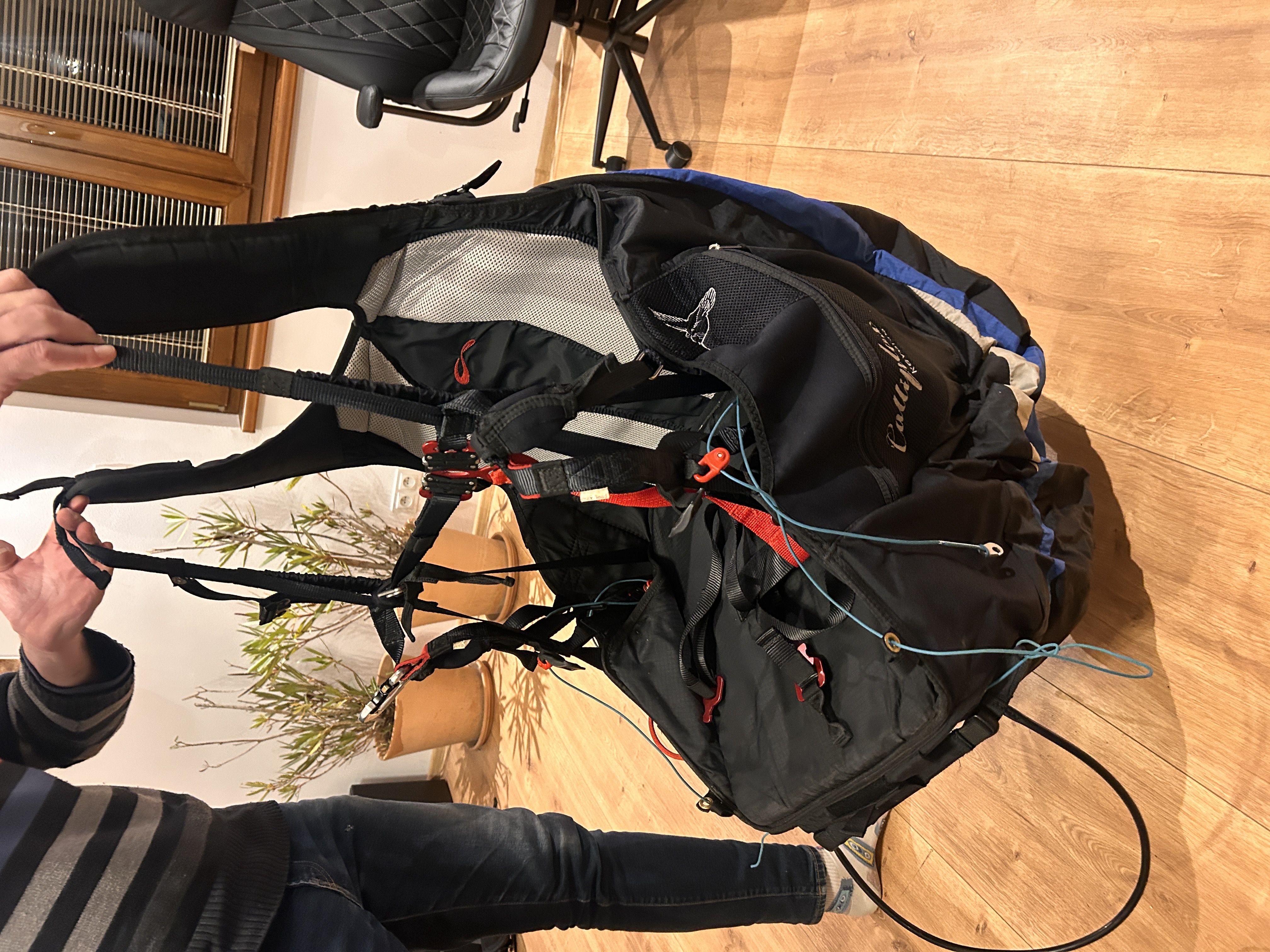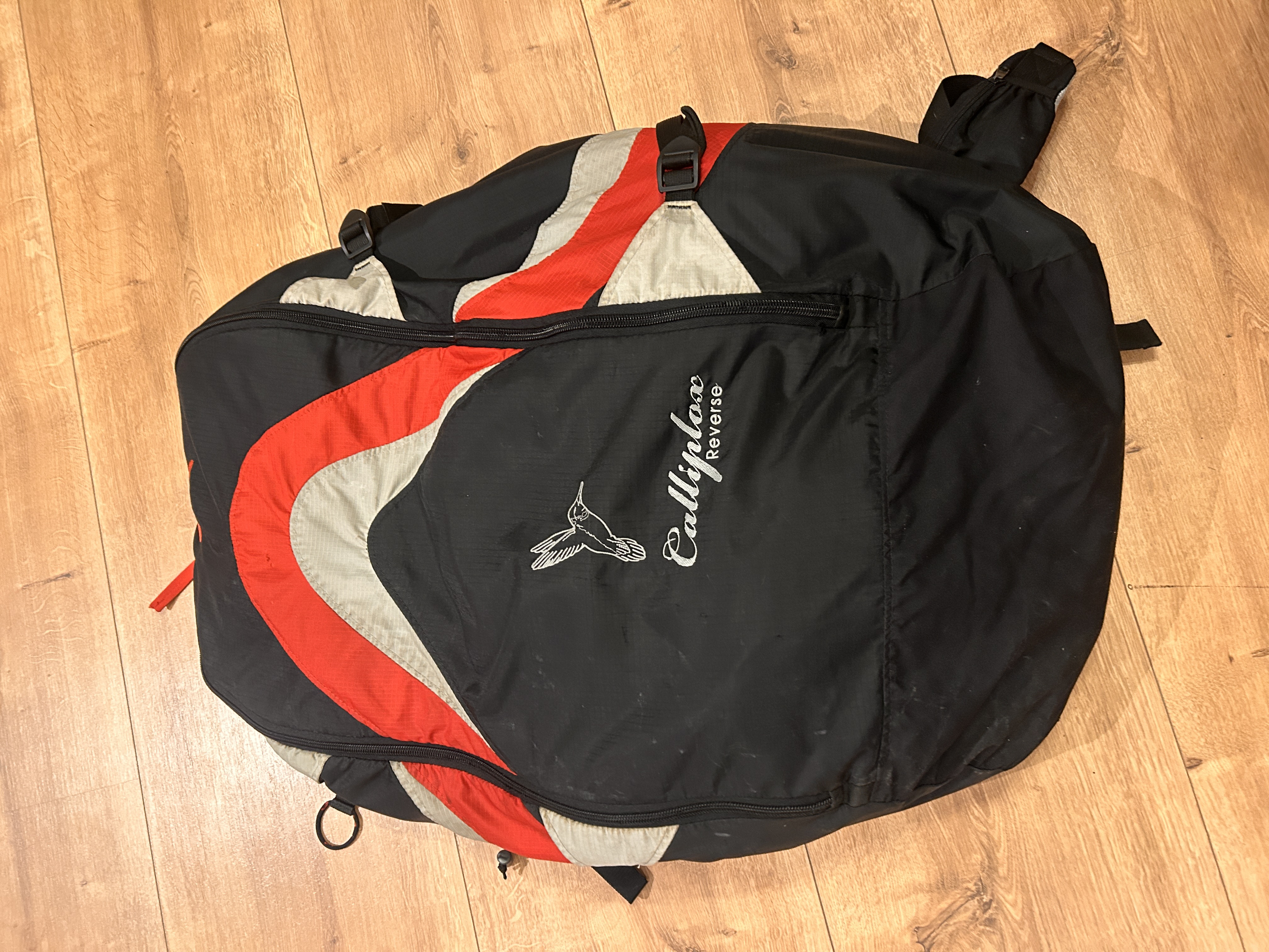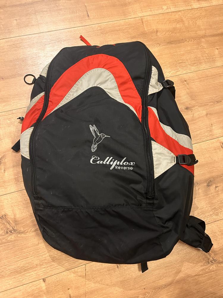 I am selling a reverse seat Calliplox Reverse 1, size XL, year of manufacture 2017, flown approx. 200 hours. Slightly worn. It includes a speed bar, a relax bar, a case for the walkie-talkie and I am adding a backup parachute GIN42 from 2015 for a weight of 100-130 kg, repackaged once a year.
