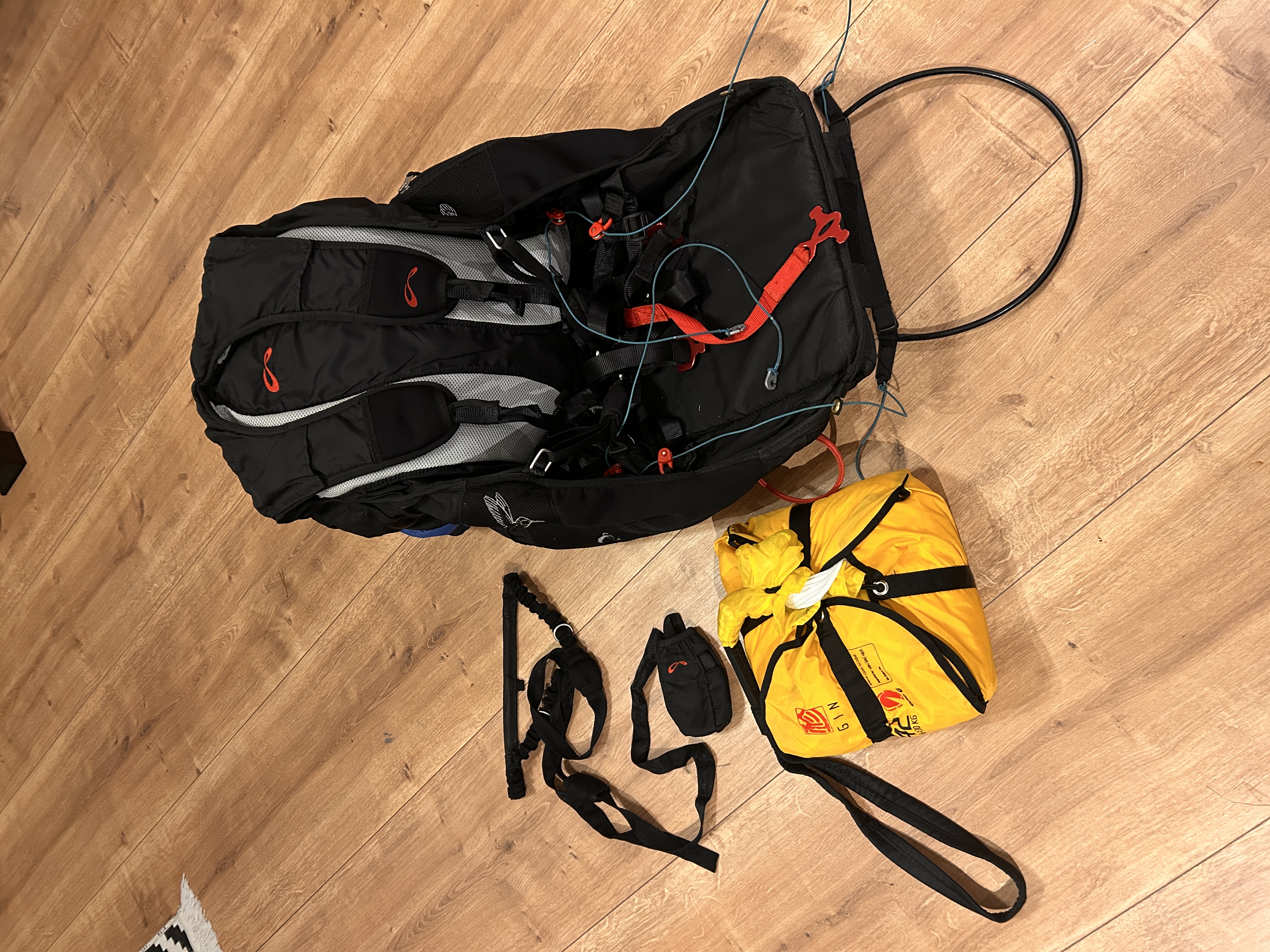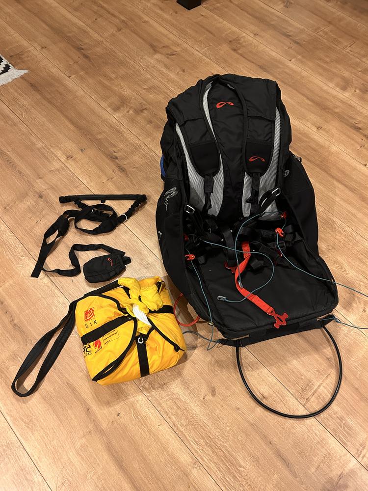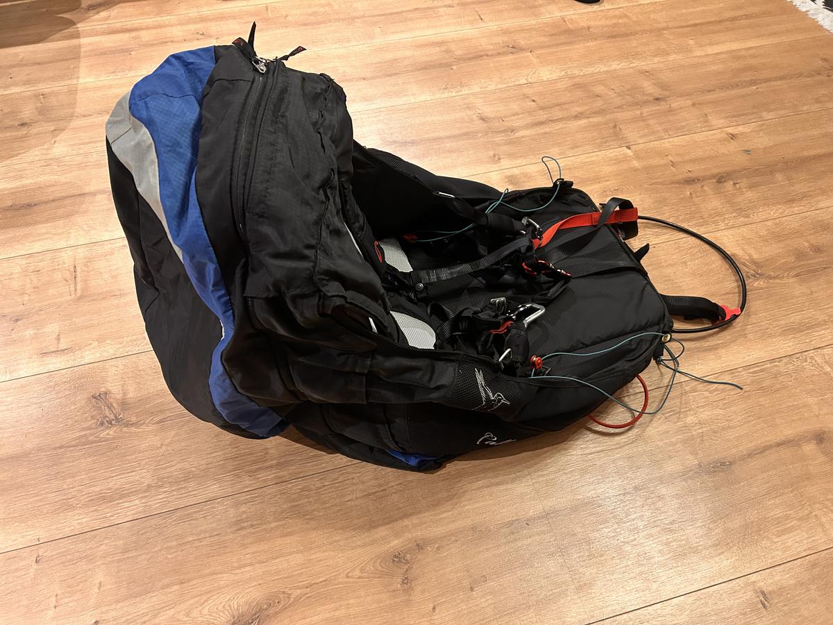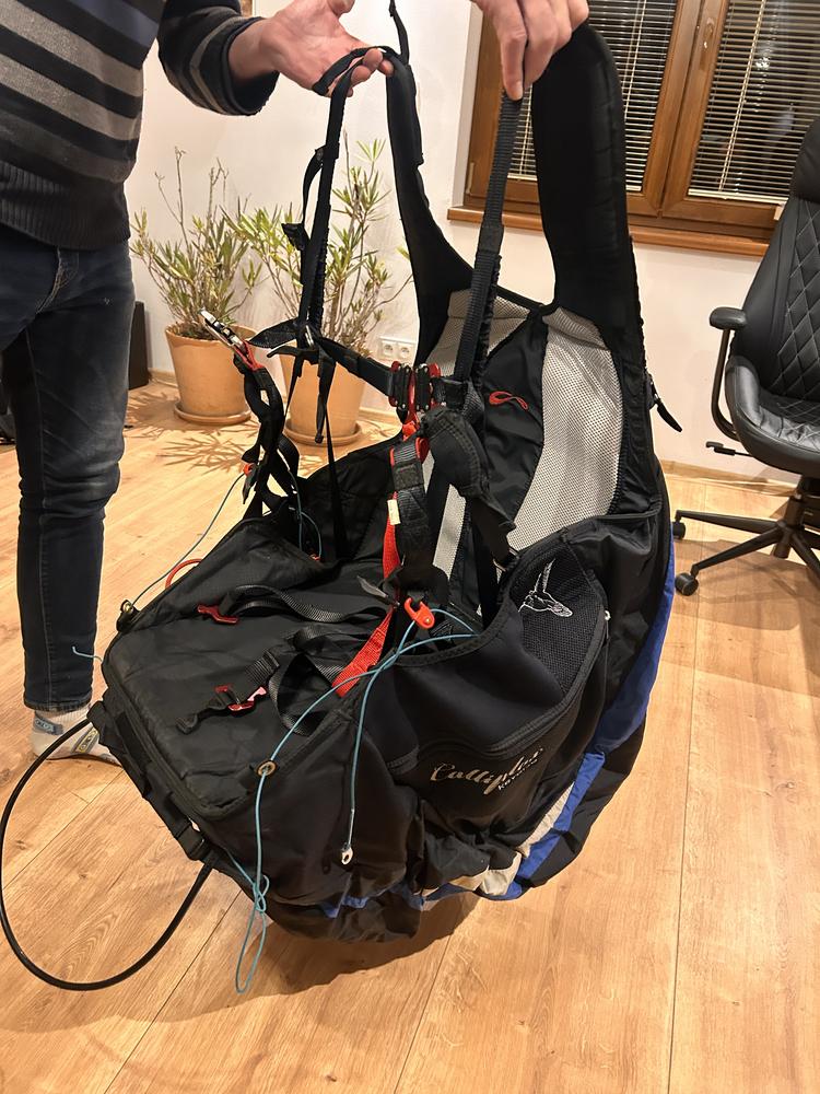 I am selling a reverse seat Calliplox Reverse 1, size XL, year of manufacture 2017, flown approx. 200 hours. Slightly worn. It includes a speed bar, a relax bar, a case for the walkie-talkie and I am adding a backup parachute GIN42 from 2015 for a weight of 100-130 kg, repackaged once a year.