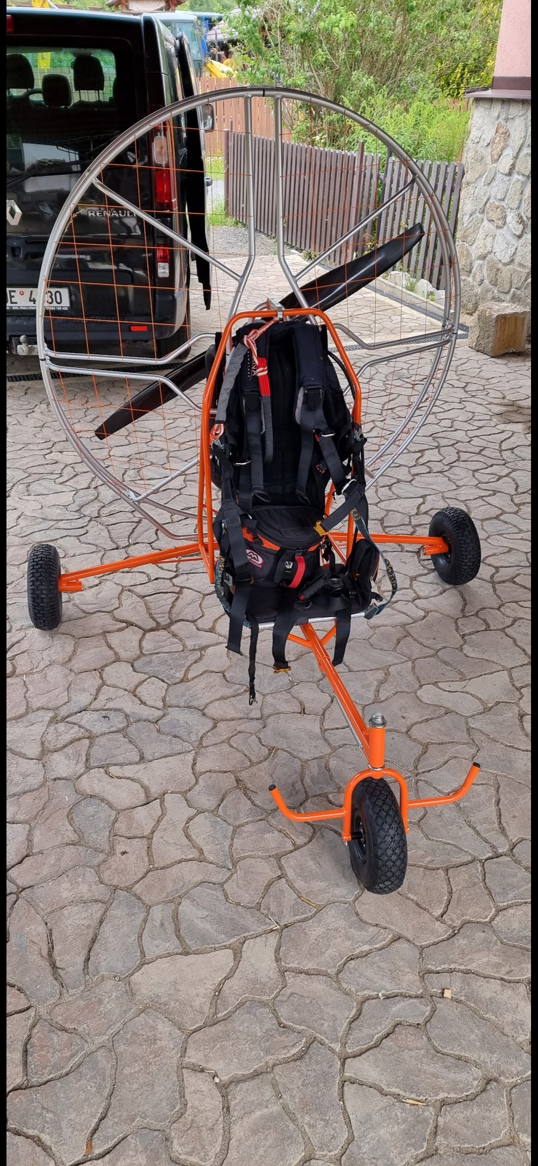 Speed Mouse tricycle. Dismantled, suitable for Nirvana Rodeo and Electric engines. Walkerjet and other paramotors can also be easily built if someone knowledgeable and experienced in the field of paramotors does it - it is a removable paramotor chassis according to the current LAA legislation. 10000.- agreement
