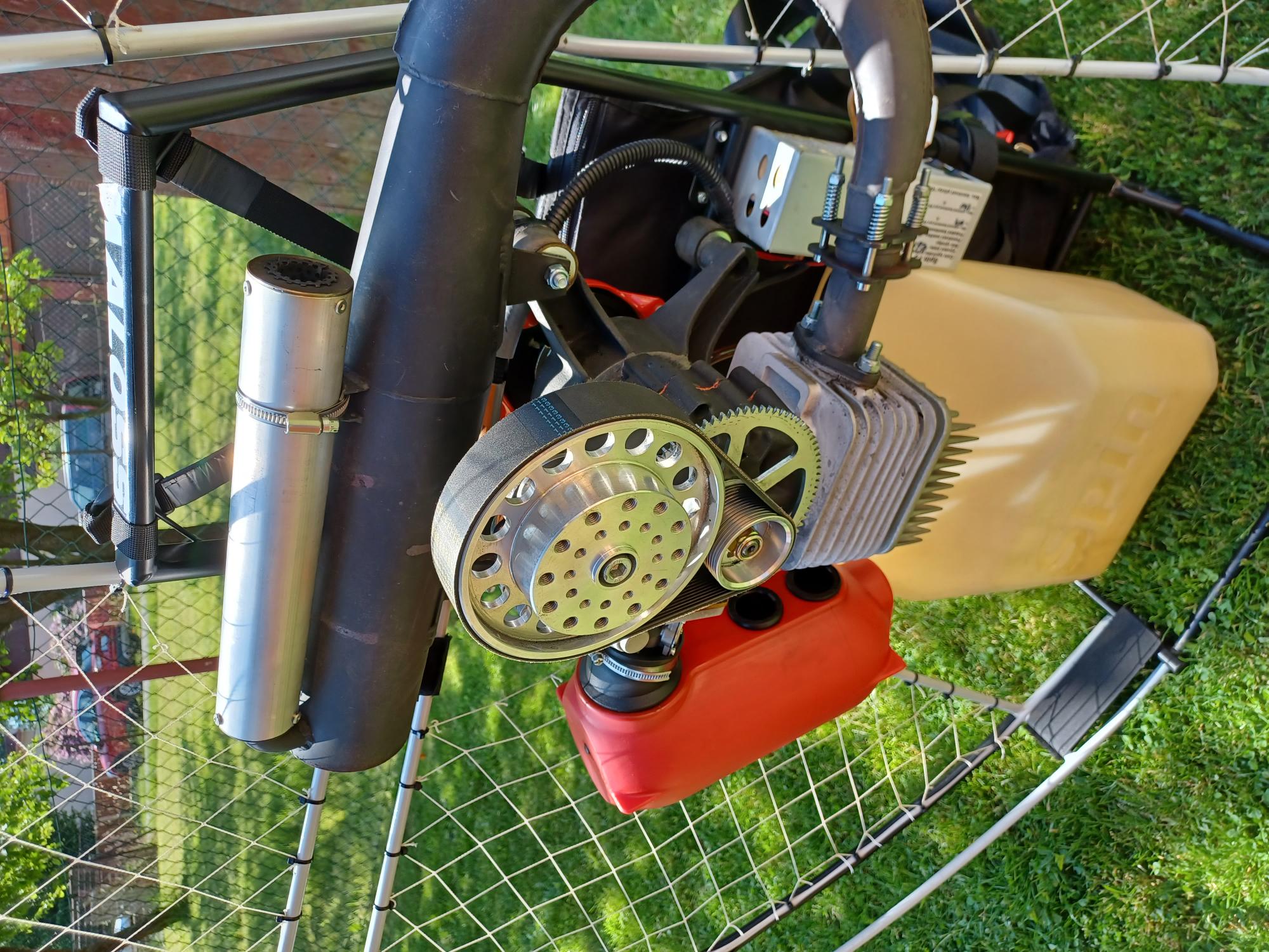 Features: Gas in left hand, Battery, Transport packaging, With speed, Upper suspension, 2 blade propeller, TC fresh, Electric starter, Wooden propeller