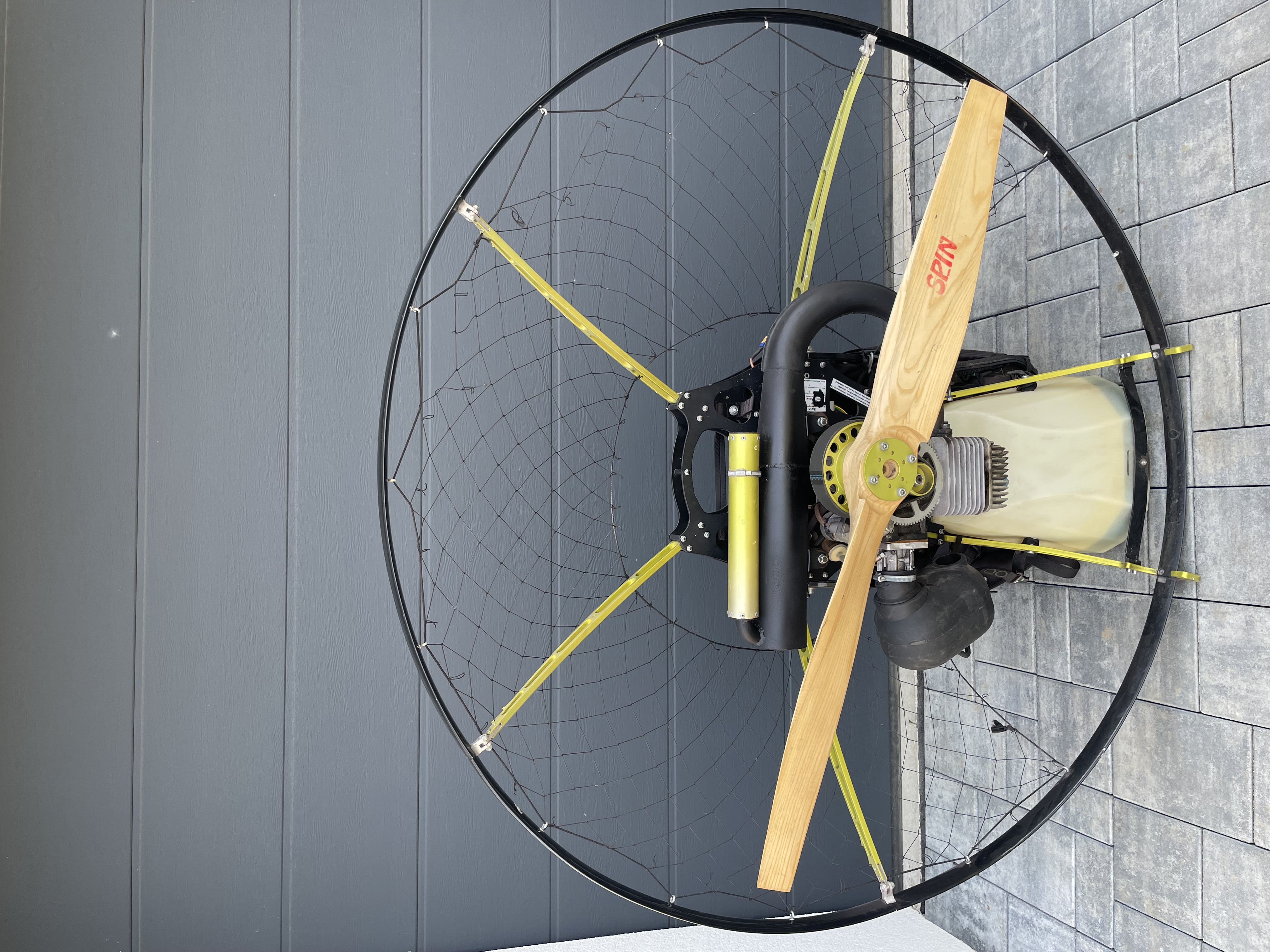 Features: Gas in left hand, 2 blade propeller, With reserve, Electric starter, Wooden propeller