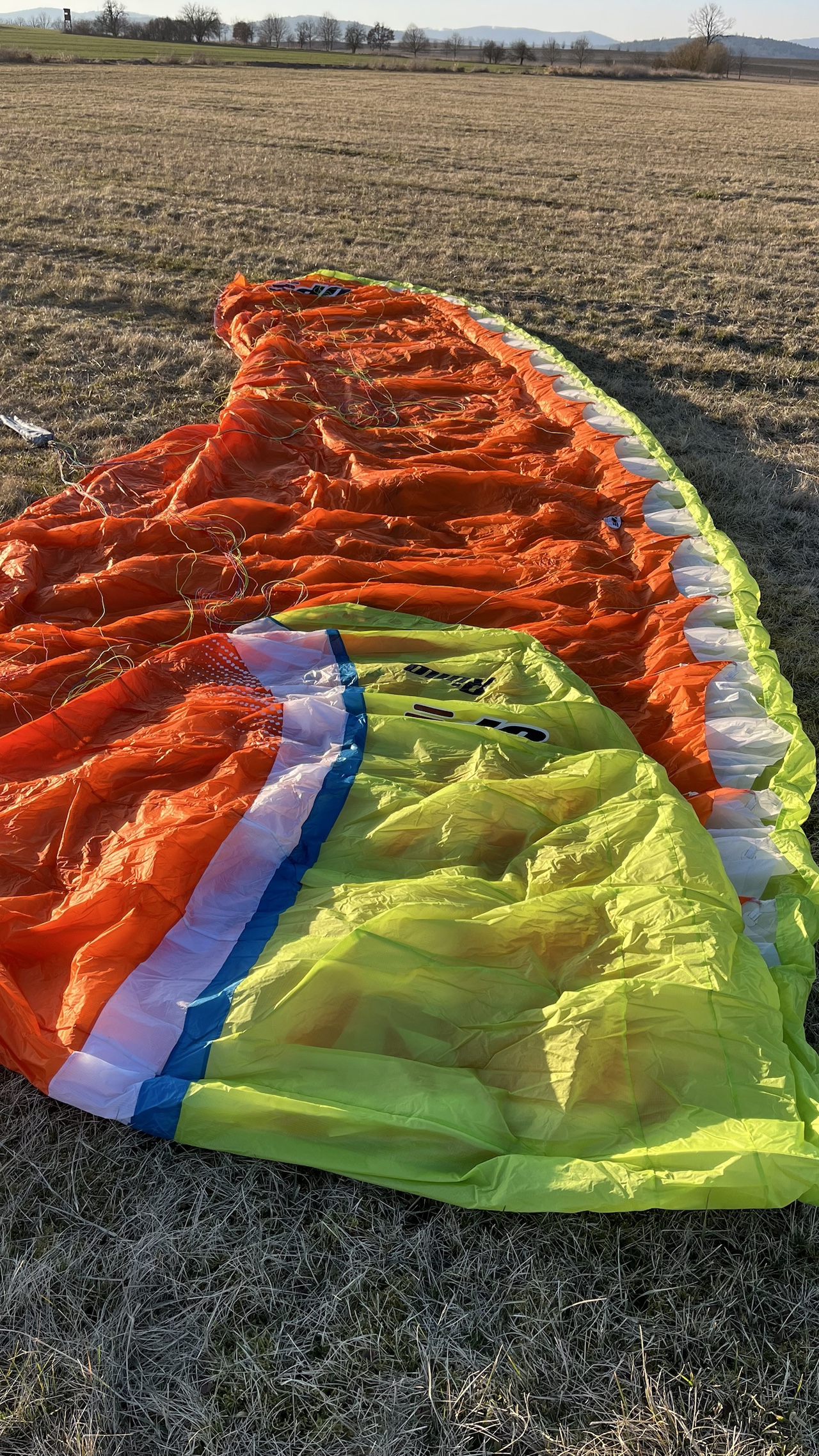 I am selling a school wing EN-A UP Rimo, size S/M, lime/orange color. The wing has been flown for about 40 hours and has been rather unused for the last 3 years, flown only sporadically. It has never hung in branches or fallen into water, it has no repairs, everything is in its original, nice condition. Porosity everywhere 200+, TK valid until 8/2027 or 150 hours. Possible to try in Klatovy on the surrounding terrain, or I can send after payment in advance (I do not send by cash on delivery). I bought the parachute new right after the course.