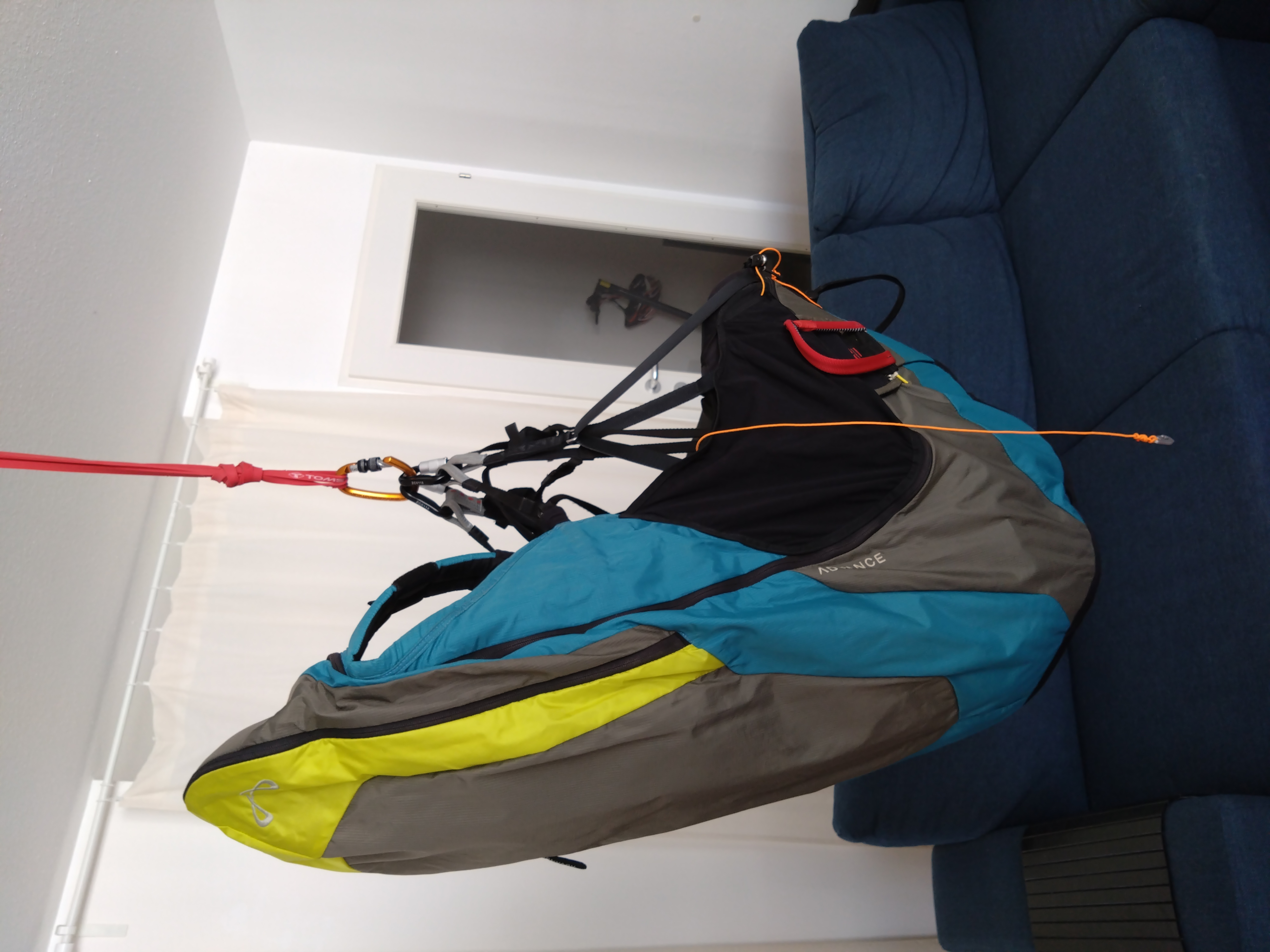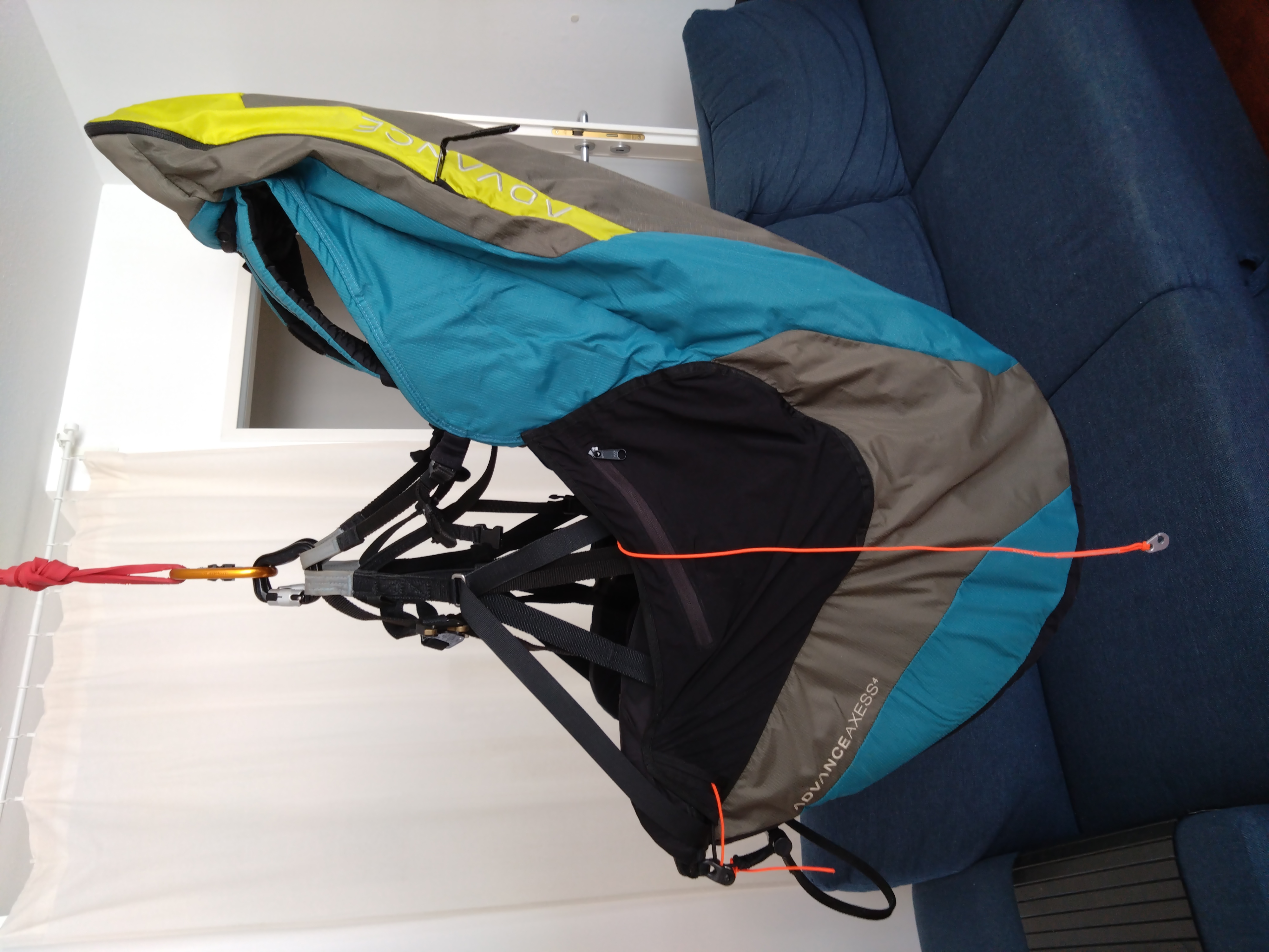 Advance Axess 4 L + segnalibro Blue Way. https://pg-shop.cz/stare-modely/179-advance-axess-4.html https://pg-shop.cz/zalozni-padak-zalozak/40-blue-way.html Primo proprietario, condizioni eccellenti. Nessuno strappo o graffio, nemmeno sulla protezione, vedi foto. Include barra di velocità in carbonio e contenitore per segnalibro. Una cima di velocità sostituita. Segnalibro appena reimballato/controllato professionalmente presso easyfly.cz (marzo 2026). Il segnalibro è installato nel sedile, collegato con un maillon.