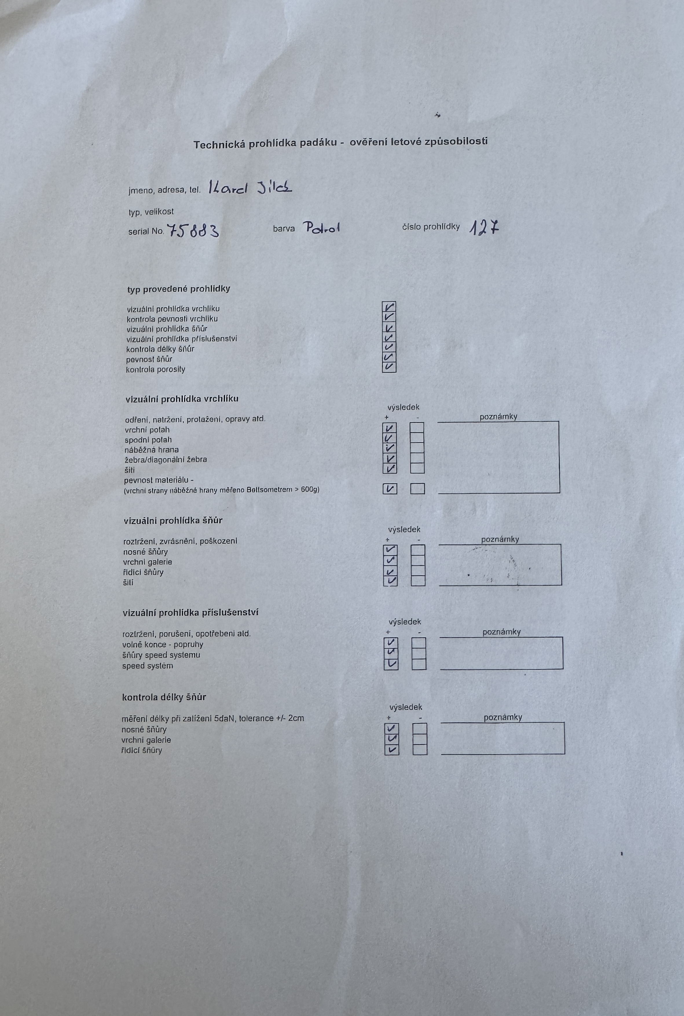 Vendo una vela Advance Sigma 10 EN-C, taglia 25 (peso al decollo 80-100 kg), anno di fabbricazione 2019. Ore di volo circa 200. La vela è in ottime condizioni, sempre tenuta in ordine, senza riparazioni o rattoppi. Revisione appena effettuata (valida fino al 1.5.2027). Porosità: circa 200 s, su un'estremità 67 s. Inclusa la sacca di compressione Advance originale. Motivo della vendita: passaggio a un'altra vela.