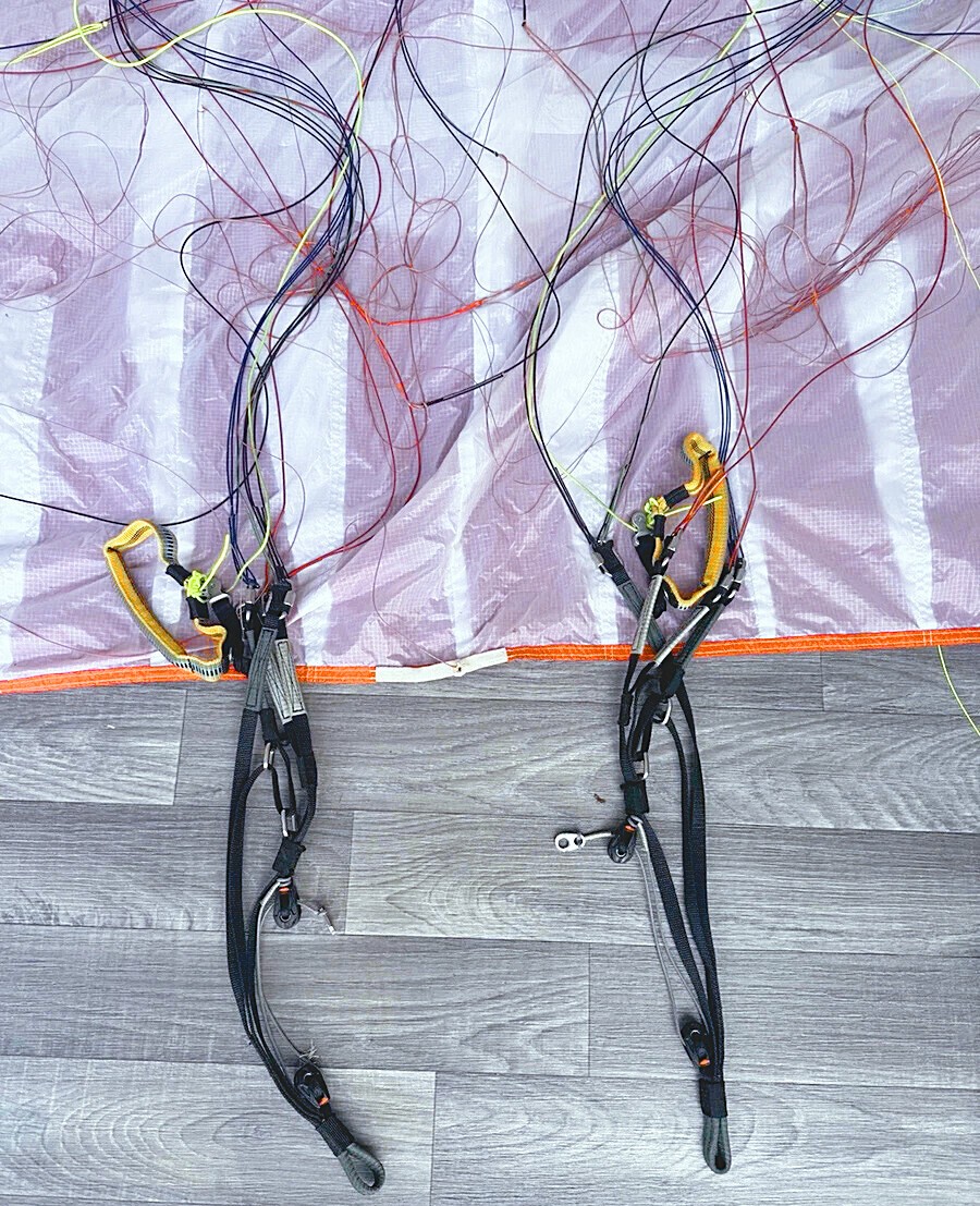 *Viola/Bianco/Arancione *Taglia Media *Pochissime ore di utilizzo, usato come parapendio di riserva. *Condizioni fantastiche. Lo vendo solo perché ho smesso di volare.