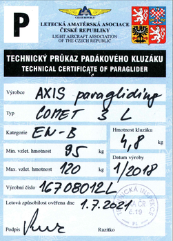 SELL: Wing EN B AXIS Comet 3 L 95-120kg No flying on the sand No trees No water TC fresh TC valid