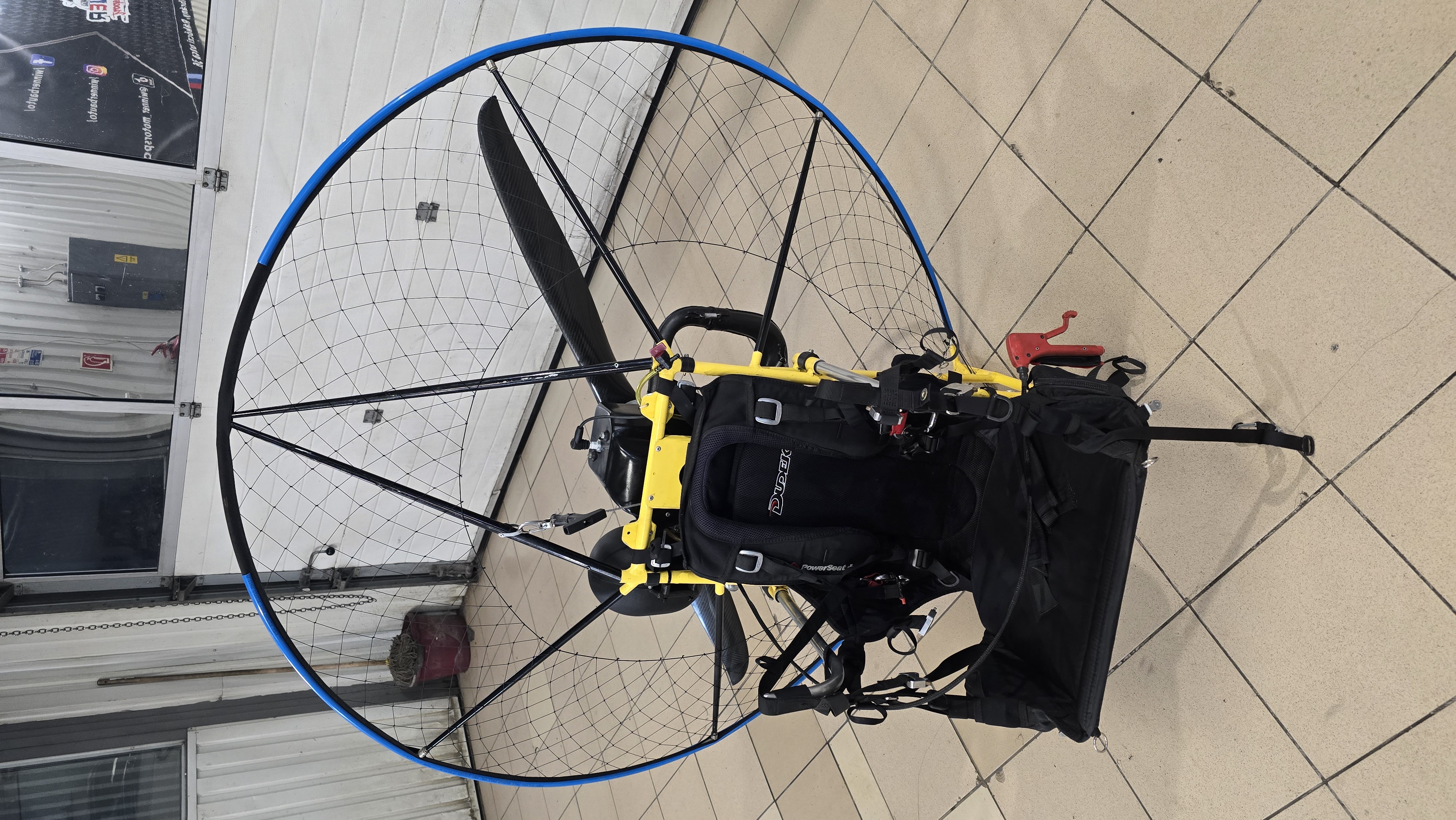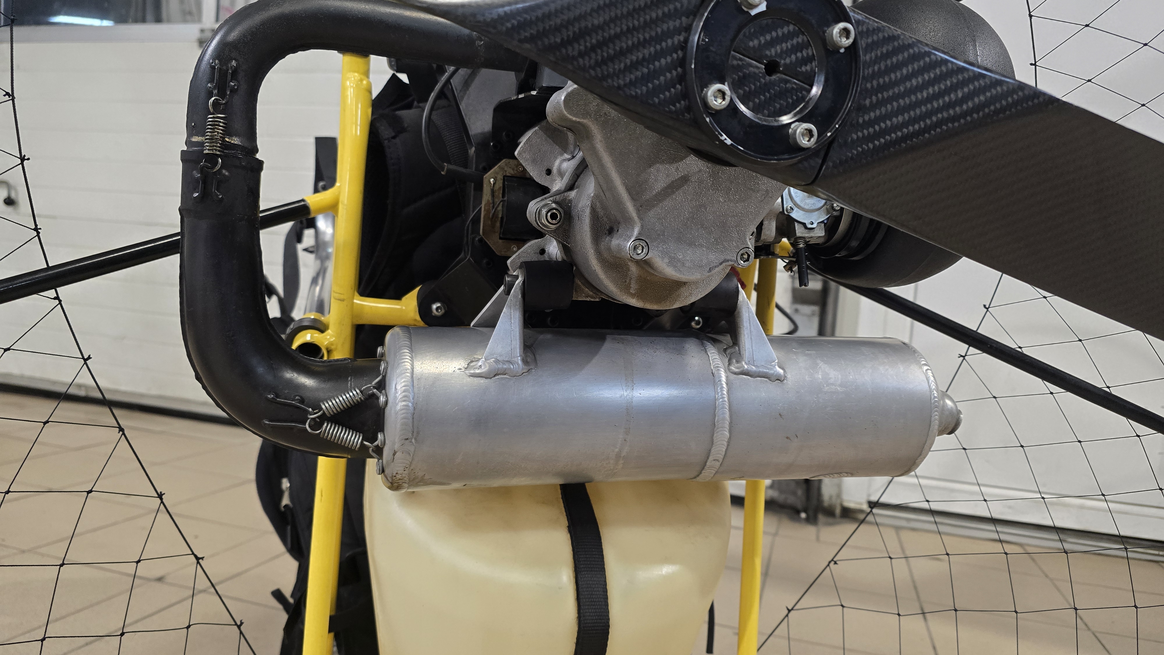 DUDEK Powerseat M-size harness with leg support (€850), carbon propeller (€350), lightweight original aluminum exhaust (€685), and propeller guard.
