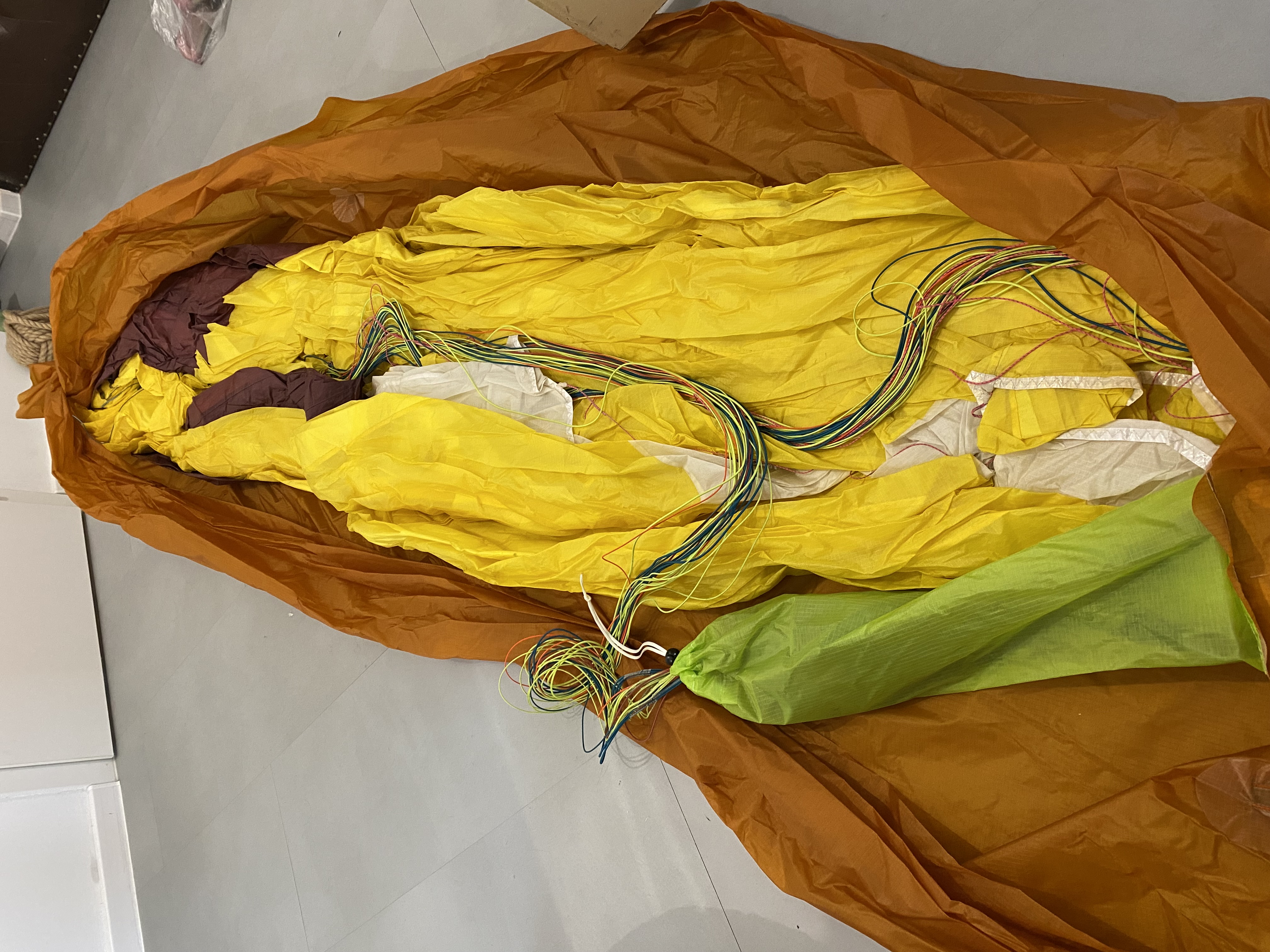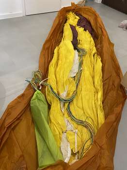 Sprzedaję mój spadochron w idealnym stanie, który wylatał maksymalnie 50 godzin. Latał przez około 3 lata, a w międzyczasie była dwuletnia przerwa z powodu dziecka. Spadochron był przechowywany w worku na liście. Właśnie przeszedł przegląd techniczny i od tego czasu raz wyleciał. Potem zmieniłem na inny.