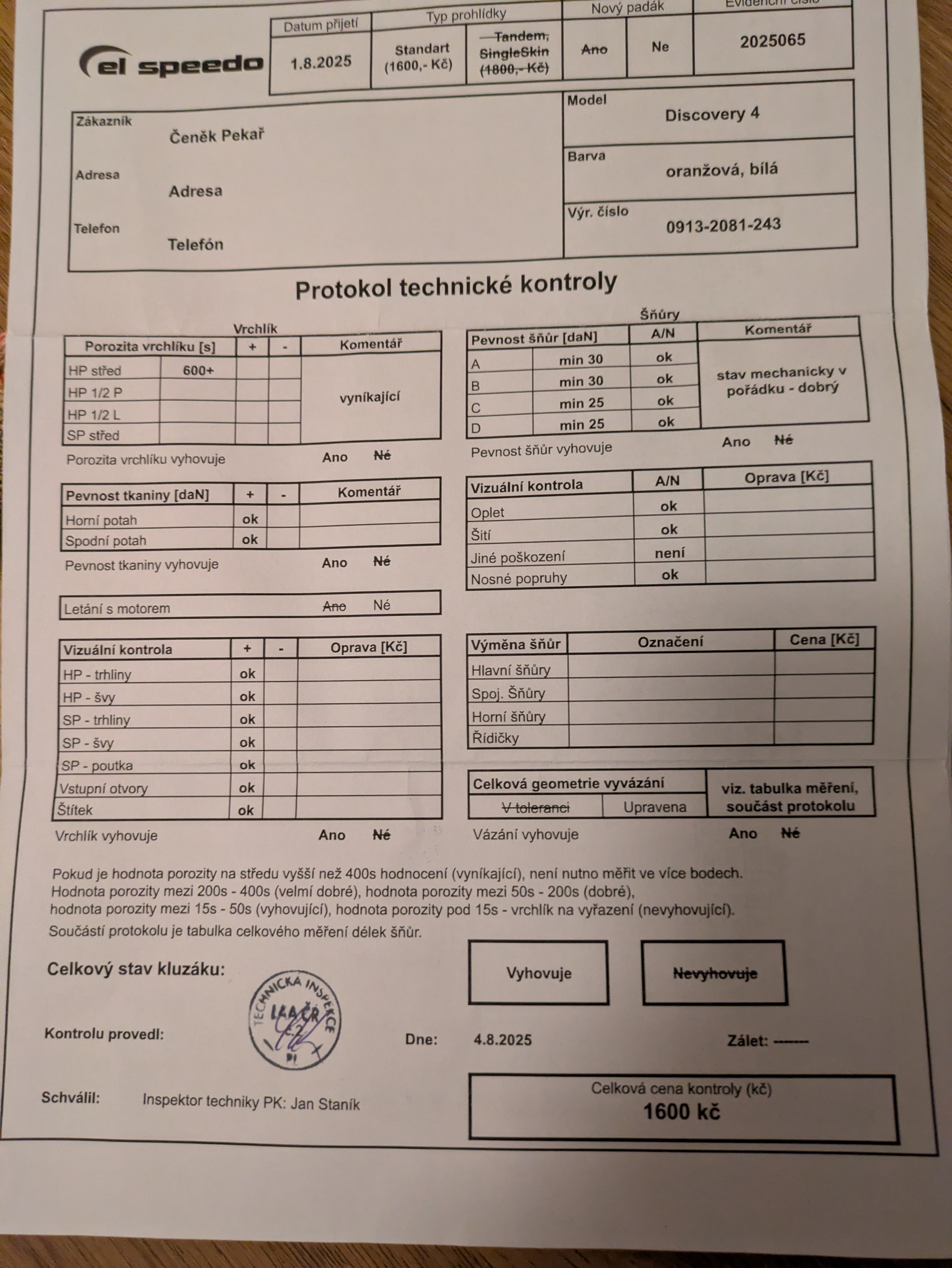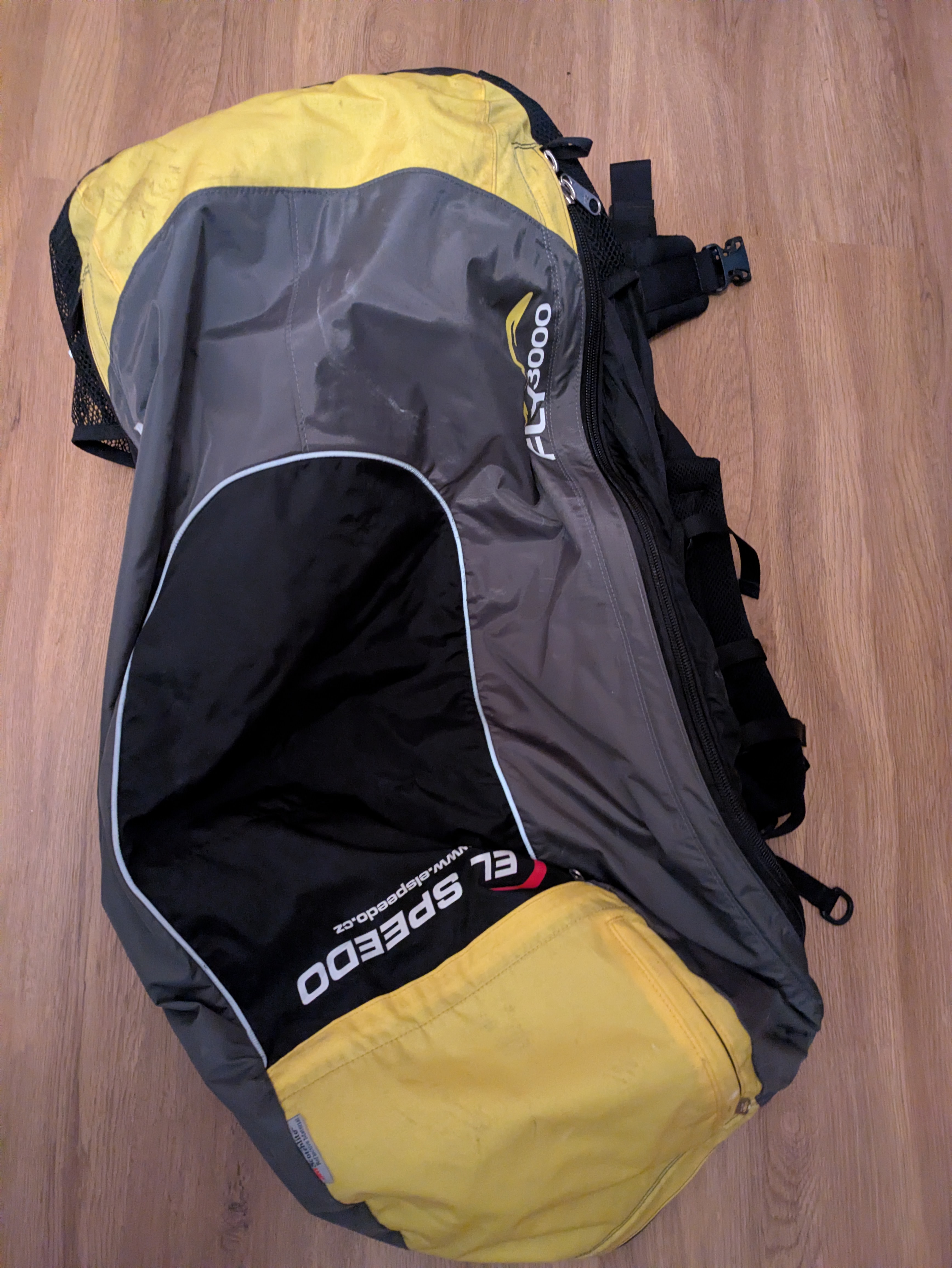 To skrzydło Freddie (rok modelowy 09/2013), ale wartości porowatości odnoszą się do nowego skrzydła. Skrzydło posiada certyfikat techniczny ważny do 08/2027, ale nie ma problemu z ponownym przeglądem i przedłużeniem ważności. Zestaw zawiera fotel Chogori (tylko raz użyty, fabrycznie nowy), spadochron zapasowy, stojak, plecak, worek na liście i plecak speedpack.