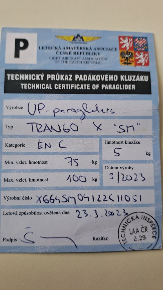 SPRZEDAM: Skrzydło EN C UP Trango X 75-100kg Brak SIV Listowany Nie kąpany Drzewa nie Z kopertowym workiem KT ważna
